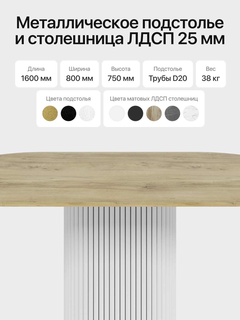 Обеденный стол – закрытая часть кухонного интерьера, центр внимания и залог комфортной трапезы. Овальный стол не только прекрасно впишется в интерьер вашего дома, но и станет незаменимым элементом столового или офисного пространства. Сочетание прекрасно сочетается со стилем лофт (LOFT) и неповторимо притягивает взгляды окружающих, являясь ведущим акцентом в интерьере. Столовый столик прекрасно дополняет любой кухонный гарнитур, придавая кухне стильный и современный вид. Создает пространство, располагающееся к уютным беседкам и веселым застольям.