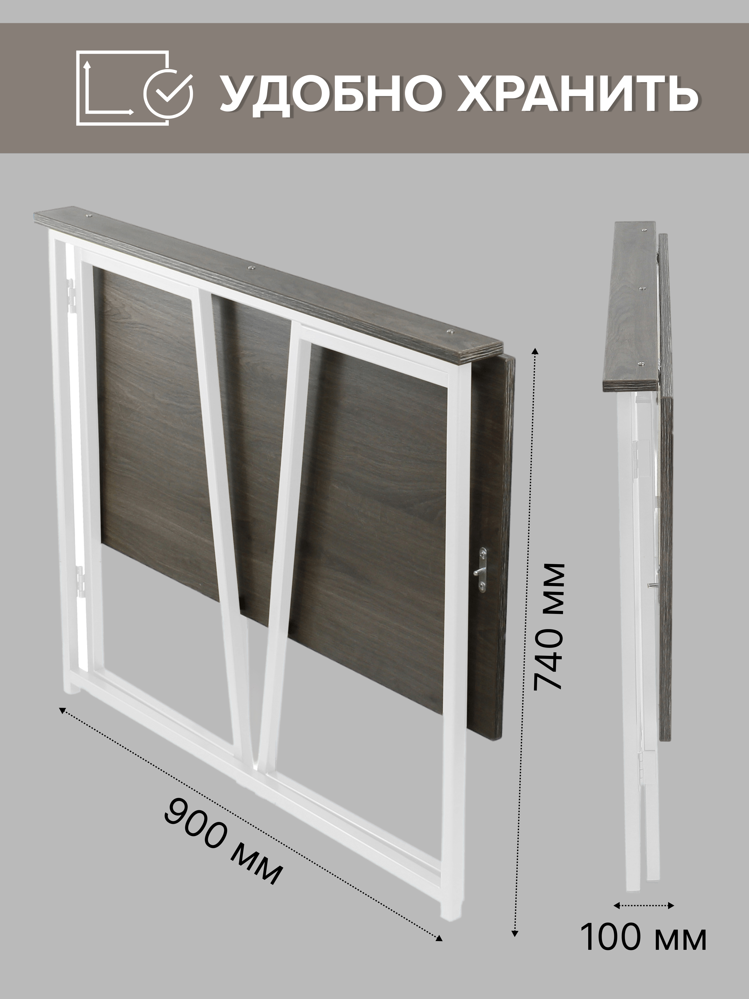 Компактный стол удобно раскладывается в ограниченном пространстве, после использования его можно сложить и убрать к стене.