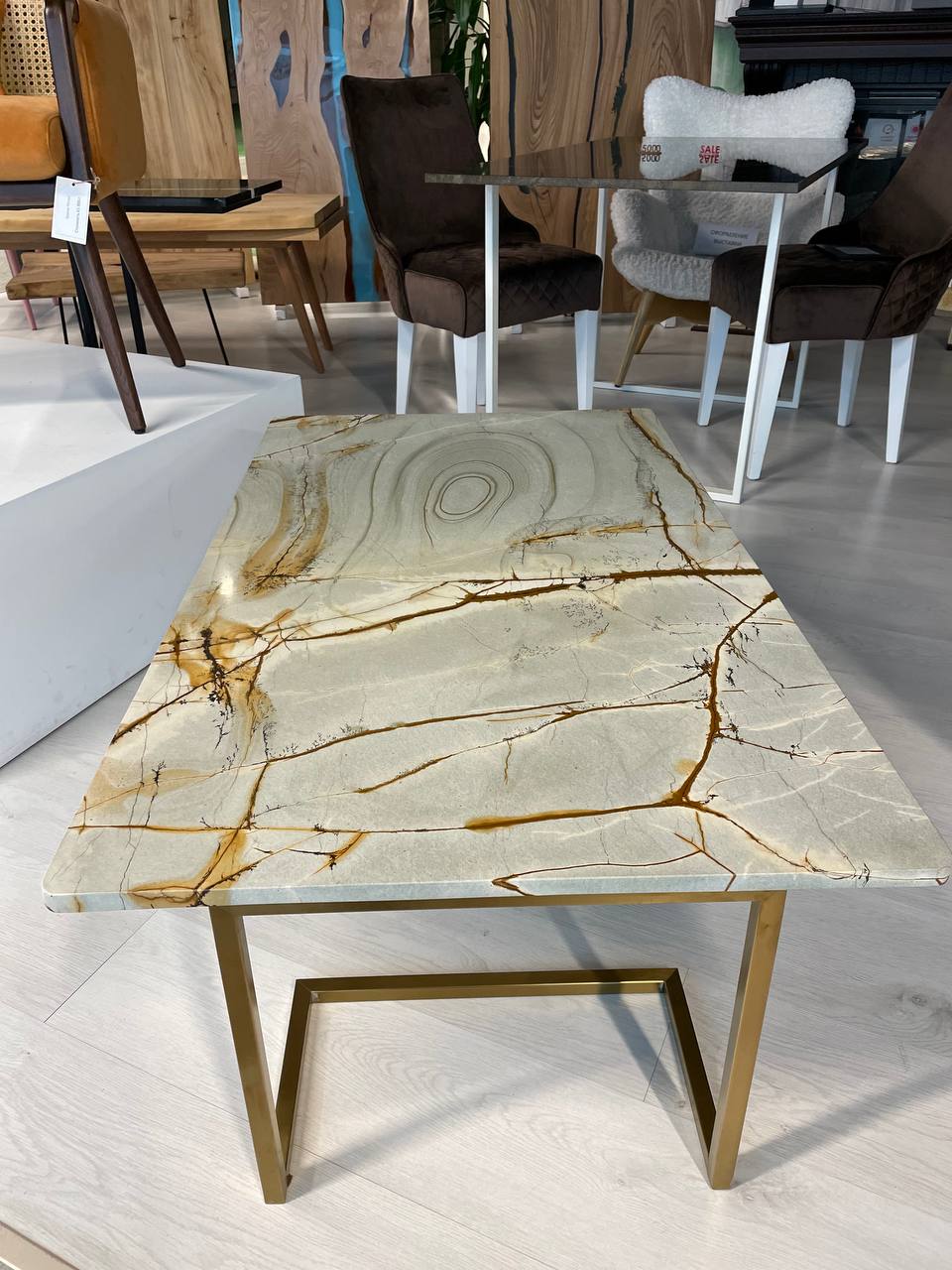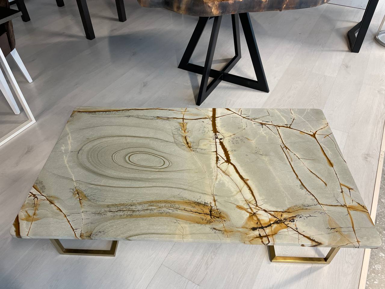 Столешница из натурального кварцита "Blue roma" с подстольем (покрытие - нитрид титана)