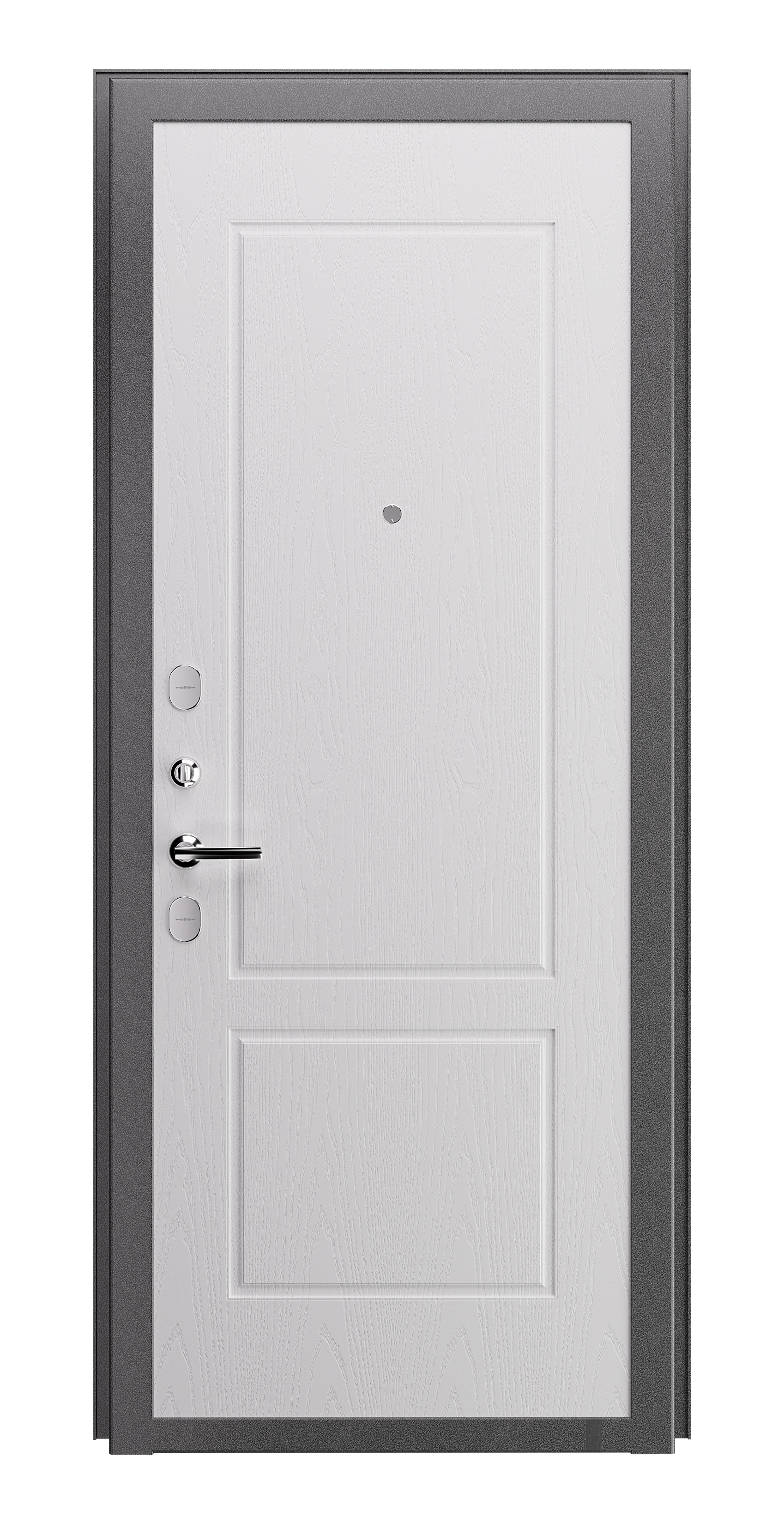 Высокий уровень безопасности: Дверь оснащена двумя надежными замками и глазком.