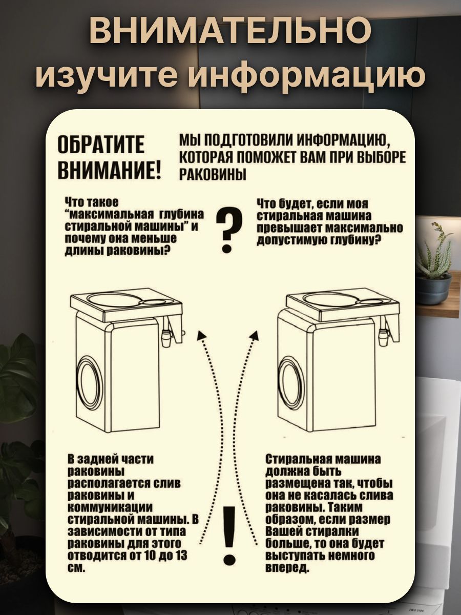 Примечание: раковина устанавливается на кронштейны над стиральной машиной(не допустимо монтировать на столешницу стиральной машины).