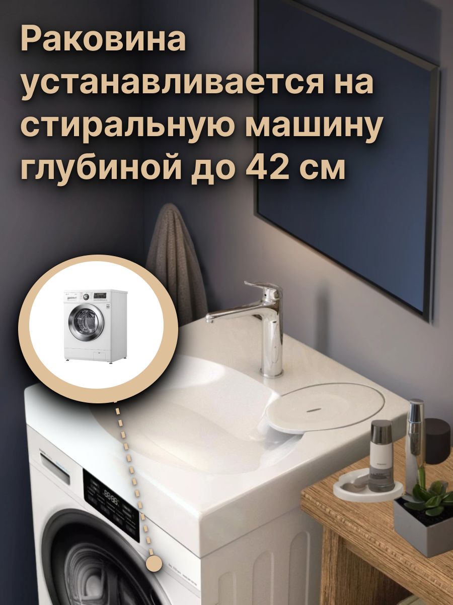 Примечание: раковина устанавливается на кронштейны над стиральной машиной (не допустимо монтировать на столешницу стиральной машины).