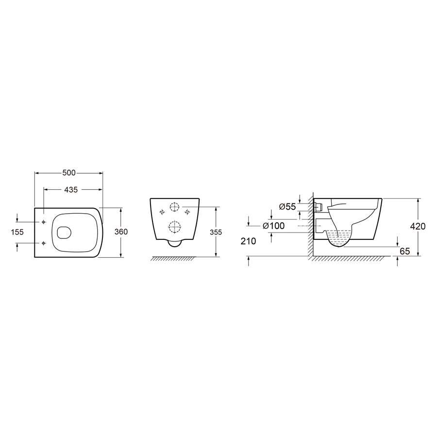 - безободковая чаша подвесного унитаза Aveo Rimless 3306101R; быстросъемное сиденье микролифт из прочного дюропласта с хромированными металлическими петлями 33290600; комплект крепления для скрытого подвесного монтажа; фигурный ключ для навески и фиксации у